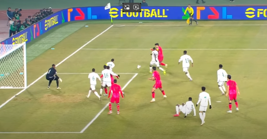 한국 수비는 이 장면에서 집중력 부족을 드러내며 실점을 허용했습니다.